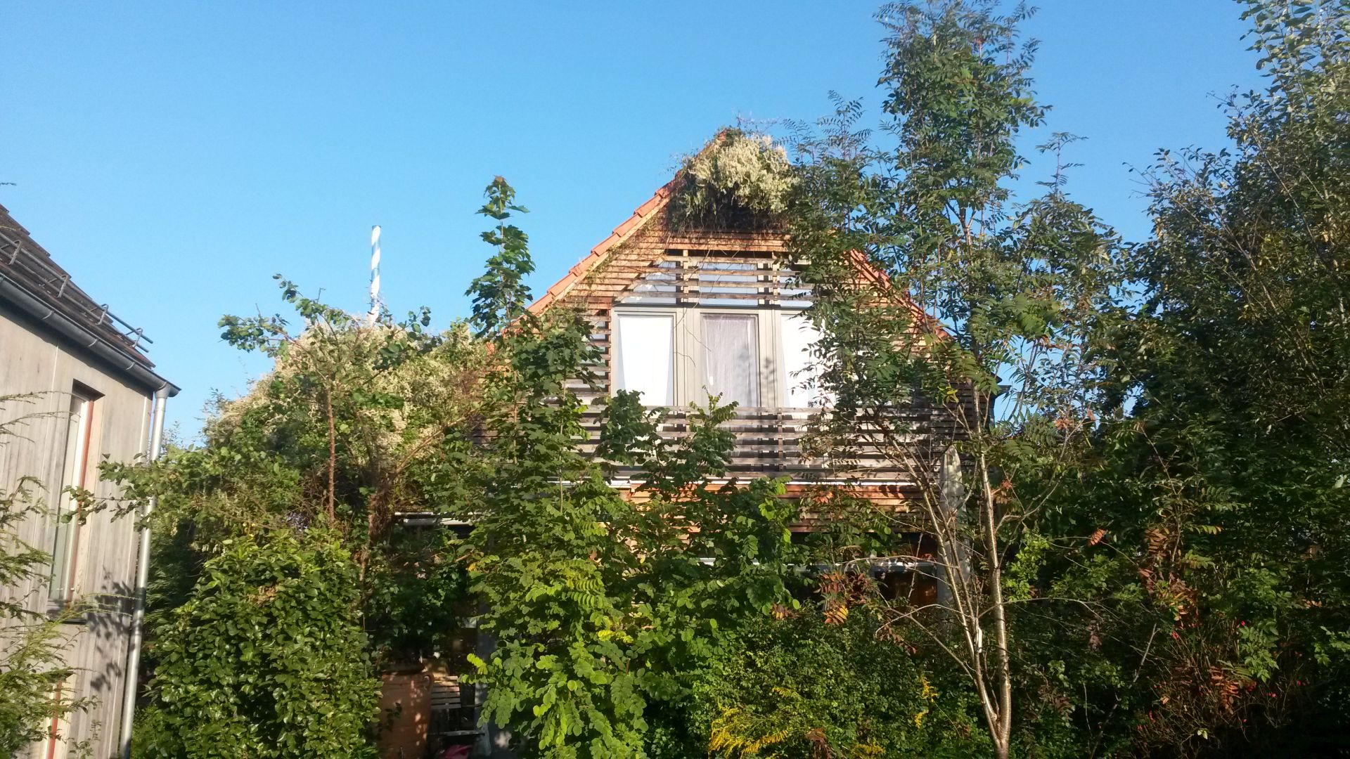 Die Geister, die wir riefen... Wir wollten es ja so. Die grüne Hölle hat sich voll eingerichtet, speziell der Knöterich am Dach (der aber im Sommer das Zimmer kühlt und daher bleiben darf). Ein typischer, herrlicher Altweibersommer-Tag in Bayern.