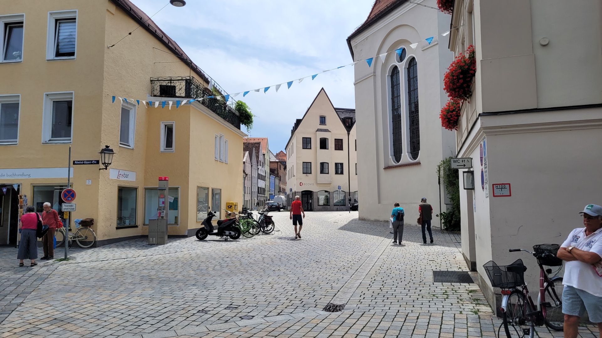 Also nochmal, was hätten wir hier? Sparkasse, Touristinfo, Fotogeschäft, Buchhandlung, Apotheke, einen reizenden Kinderladen :-) Unverpackt-Lebensmittelgeschäft, Drogerie, Bio-Pasta-Bar, Weltladen, Confiserie, zwei Bäcker, einen Metzger, Espresso-Bar, gehobenes italienisches Restaurant, spanisches Tapas-Restaurant, Schmuckladen, Zahnarztpraxis, Immobilienbüro. Und das war jetzt nur die Admiral-Hipper-Straße. So viel zum Thema verödete Innenstädte und besserer Onlinehandel. Gestatten dass wir Weilheimer*innen da recht laut lachen?