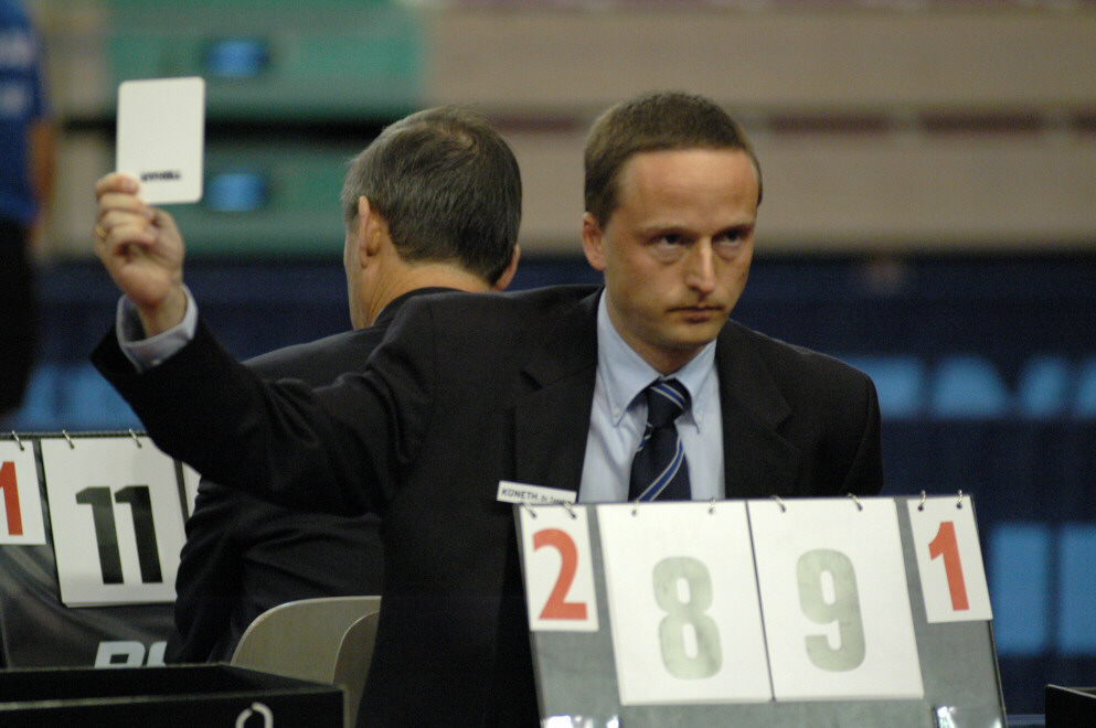 Die legendäre Rote Karte bei der Tischtennis-WM 2006: Als ich eine Betreueren wegen wiederholten damals unerlaubten Coachings disqualifizieren musste, war zufällig der Fotograf des BTTV in der Halle. Das Bild machte in Bayern die Runde, noch bevor ich aus Bremen zurück war.